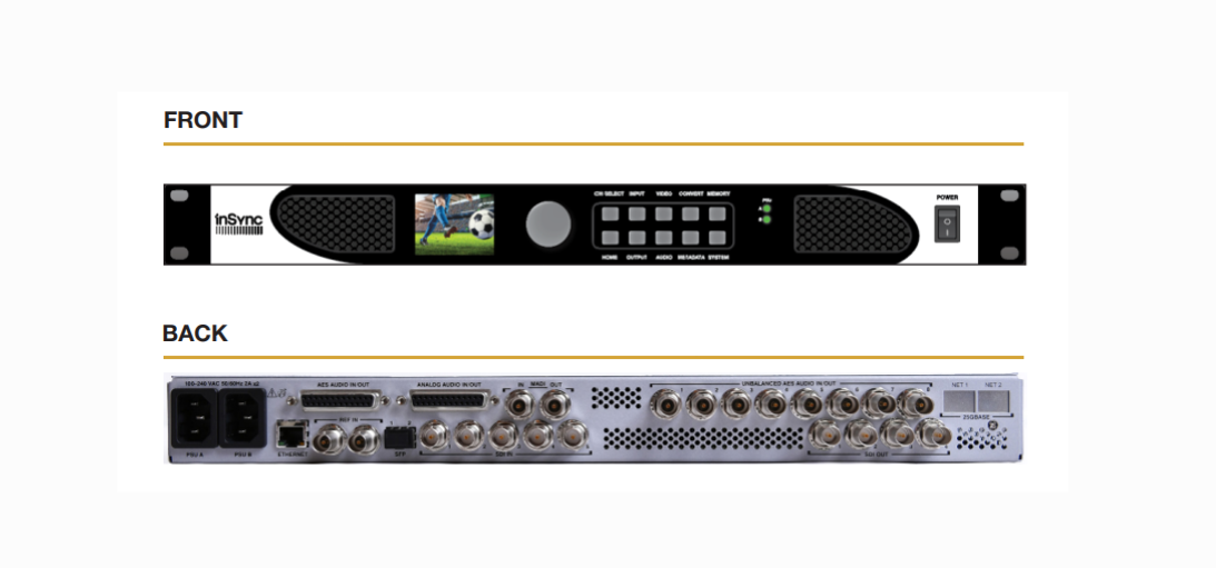 For the ultimate conversion performance in UHD or HD, this premium motion compensated frame rate converter is ideal for high motion, complex video material such as live Tier 1 and premium sports. Combining InSync’s proprietary conversion, adaptive deinterlacer, HDR and colour management tools with the lowest latency and low power consumption in a single rack unit enables unmatched processing power and efficiency