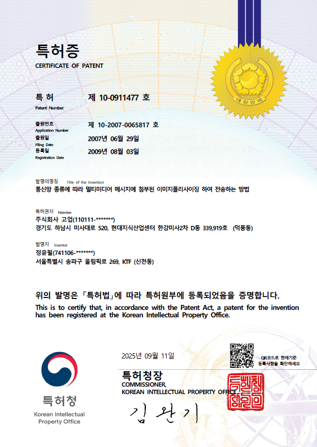 통신망 종류에 따라 멀티미디어 메시지에 첨부된 이미지를 리사이징 하여 전송하는 방법에 대한 특허